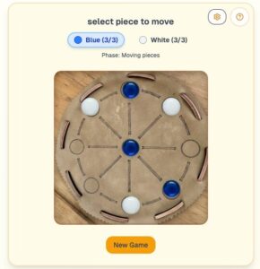 classic strategy board game built with Next.js and React, featuring a unique circular board design where players compete to align three pieces in a row. The game offers both human vs human and AI gameplay modes, multiple board themes (modern, wooden, leather), comprehensive sound effects, bilingual support (English/Polish), and is optimized as a Progressive Web App for seamless mobile and desktop experiences.