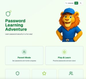 A gamified web application that teaches children to type strong passwords through practice sessions with star rewards and animations. The platform educates parents about password security while helping 6-7 year olds develop proper digital habits from an early age.